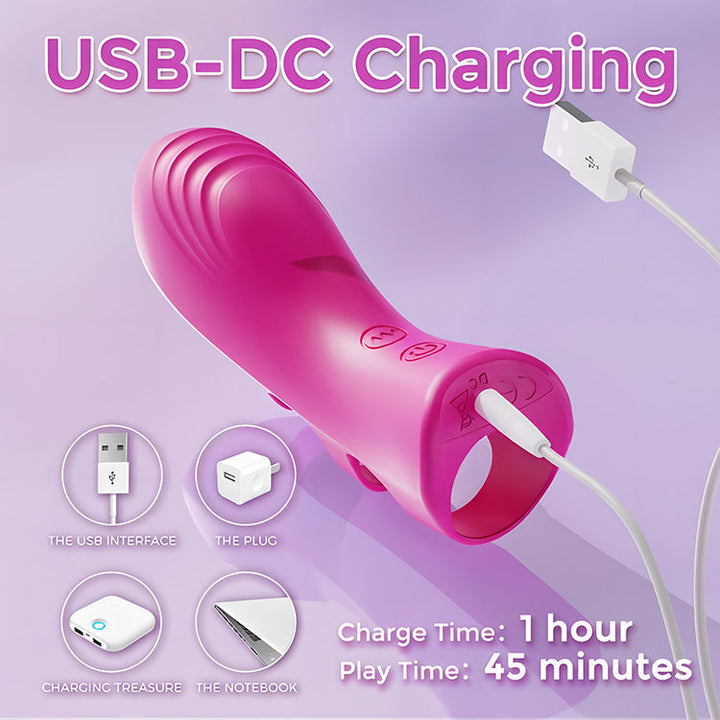 Ce vibromasseur pour doigt offre 10 modes de vibration et est fabriqué en silicone soyeux et sûr pour le corps pour une expérience confortable. La charge USB-DC assure une mise sous tension rapide et facile.